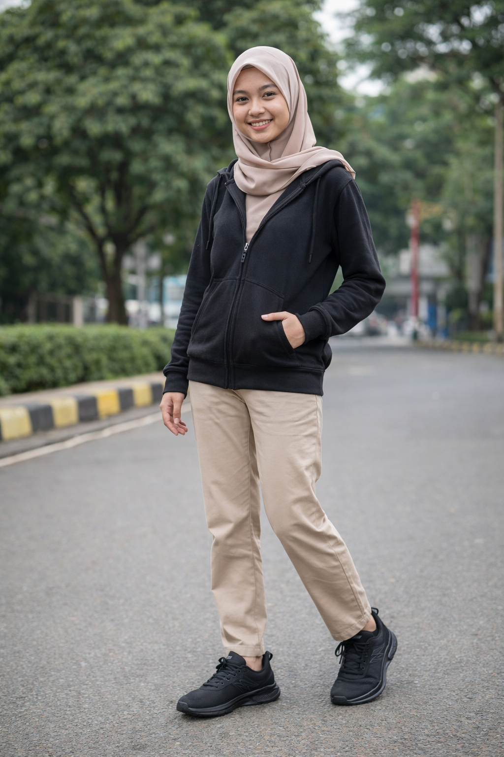 - Kenakan dengan legging high-waist dan hoodie cropped untuk gaya santai tapi tetap trendy sehari-hari.